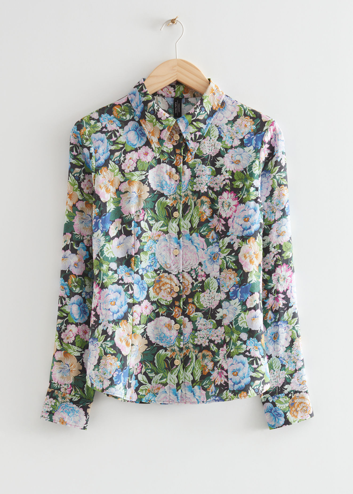 – I love the floral pattern on the dress; it’s vibrant and feels perfect for a spring garden party.