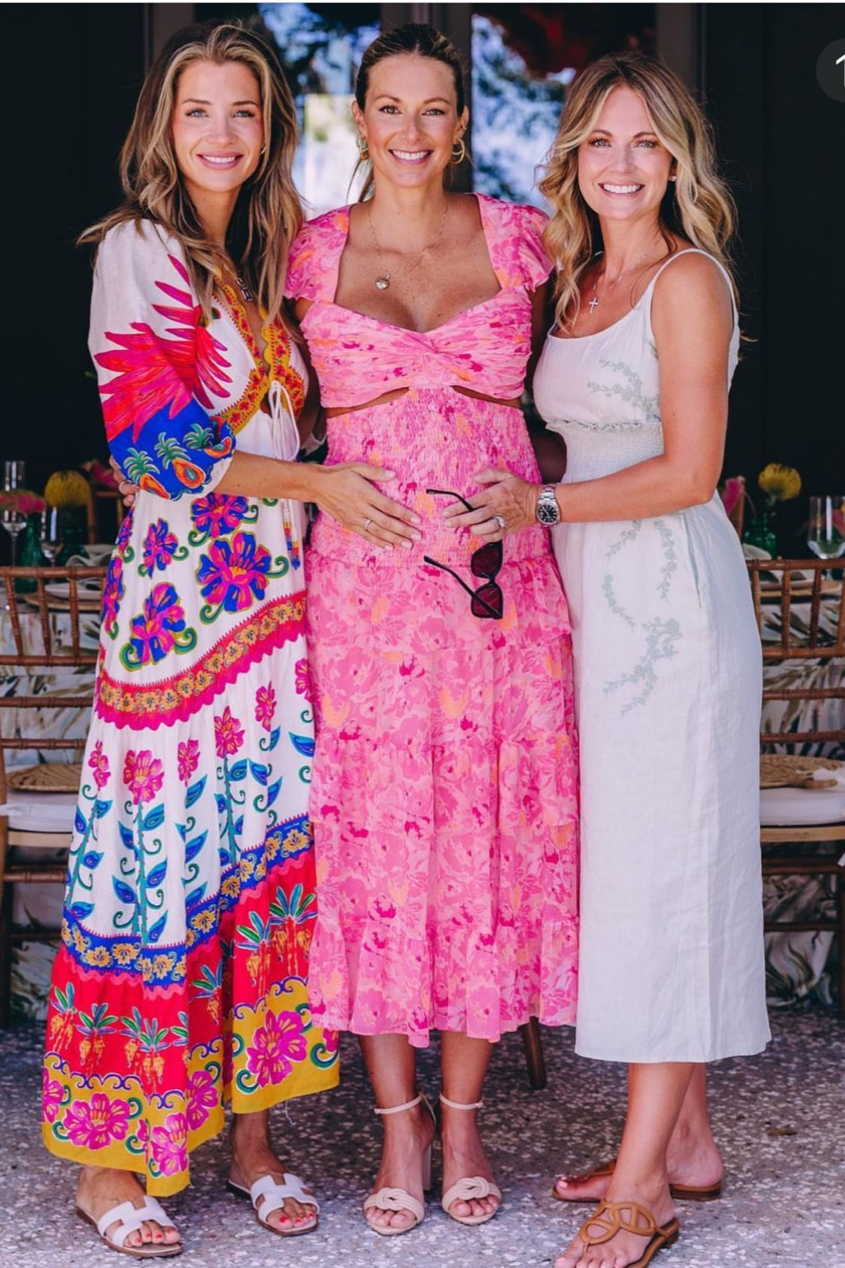 – The pink dress in the middle is super flattering with its playful, feminine vibe.