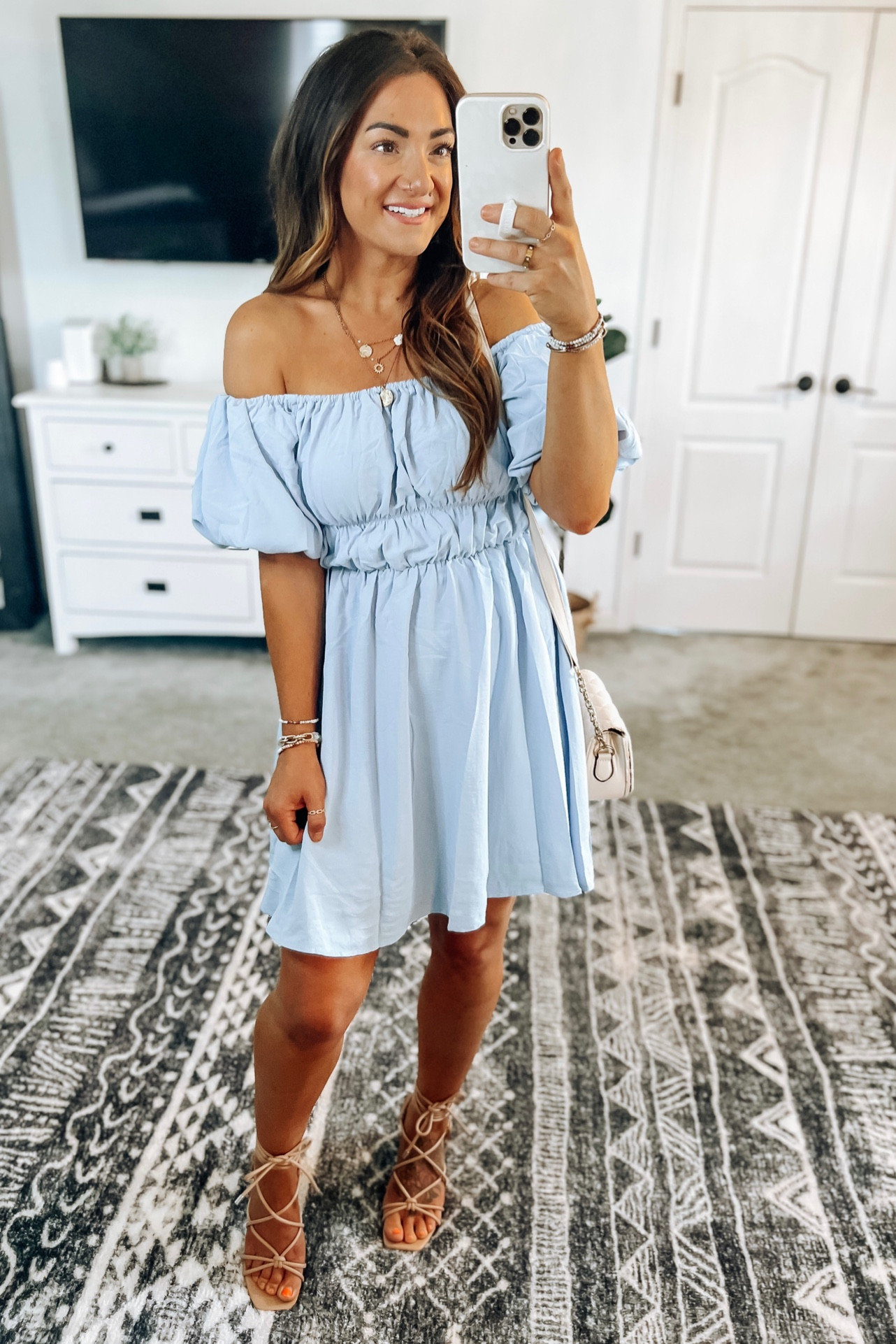 – The off-the-shoulder style gives it a playful and elegant vibe.
