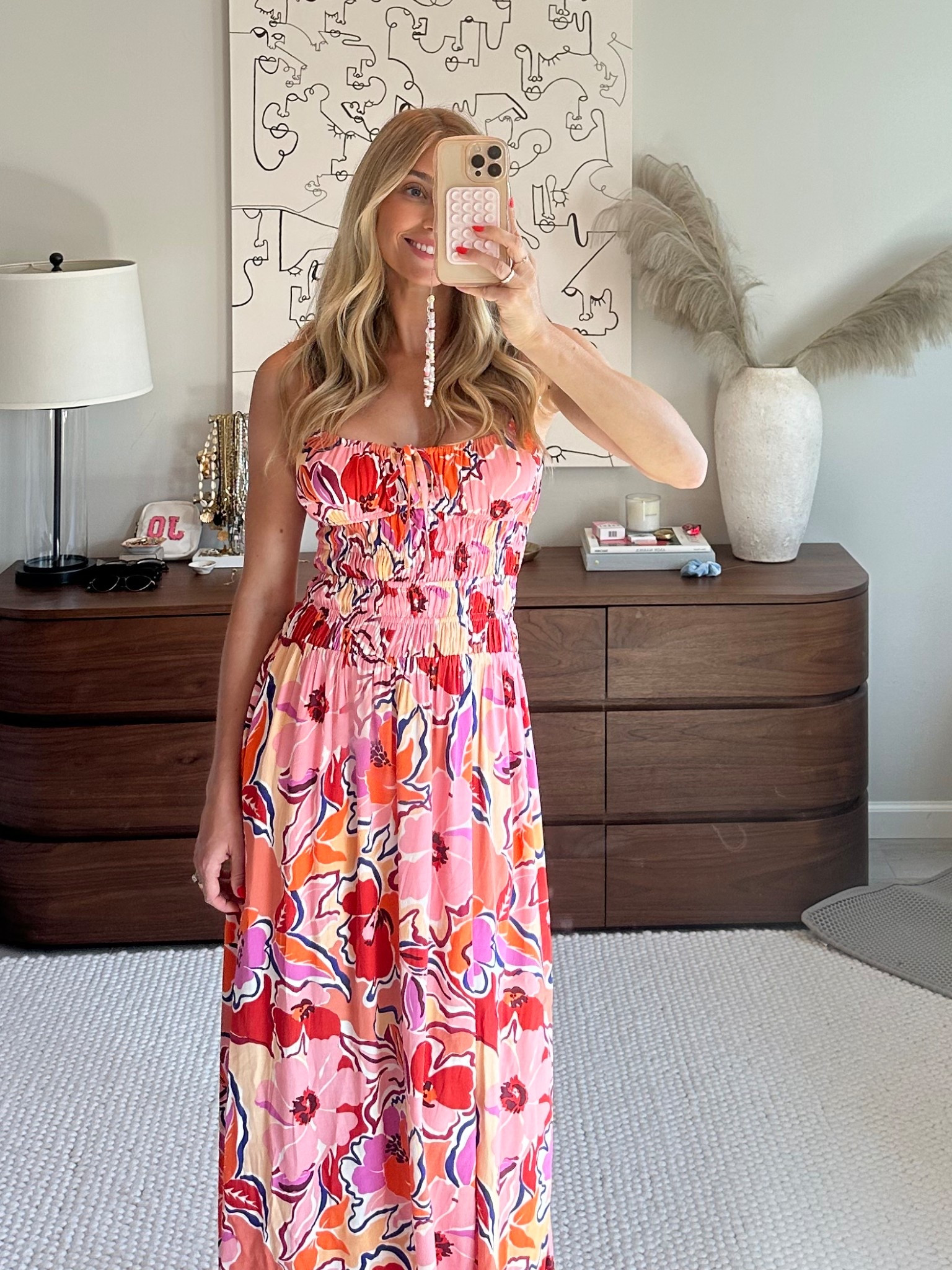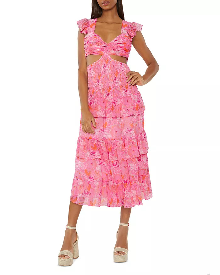 – I love the vibrant floral pattern on this dress; it feels fresh and lively.