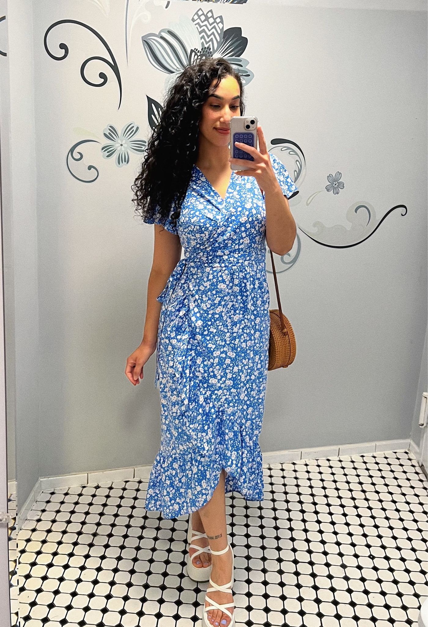 – I love how the floral pattern adds a fresh touch to the dress.