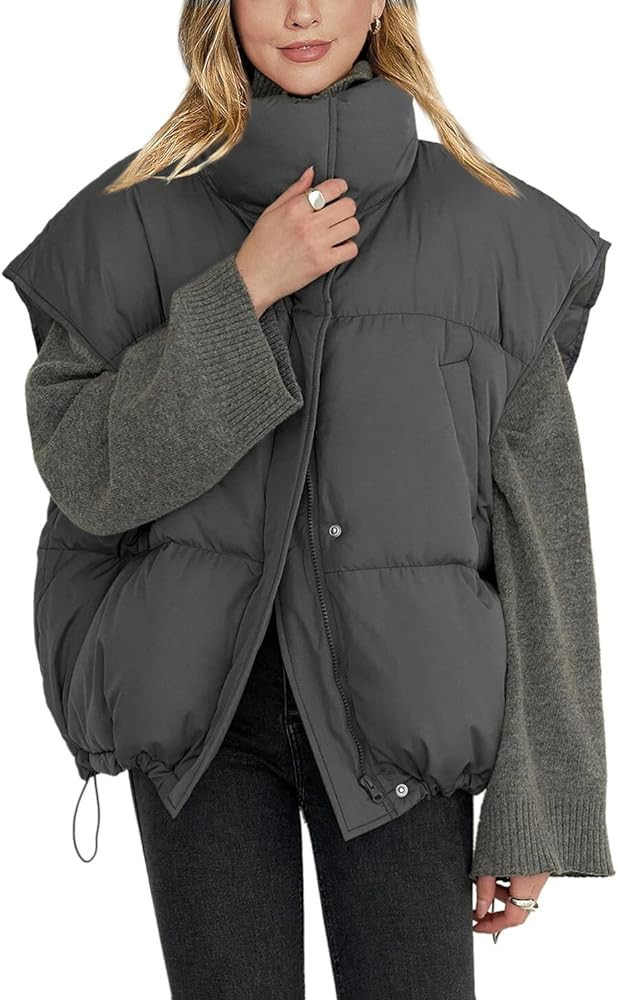 I love how this outfit combines a cozy, oversized puffer vest with a sleek turtleneck and slim-fitting pants, creating a balance of comfort and style. The chunky boots add a touch of edge while remaining practical for cooler weather.
