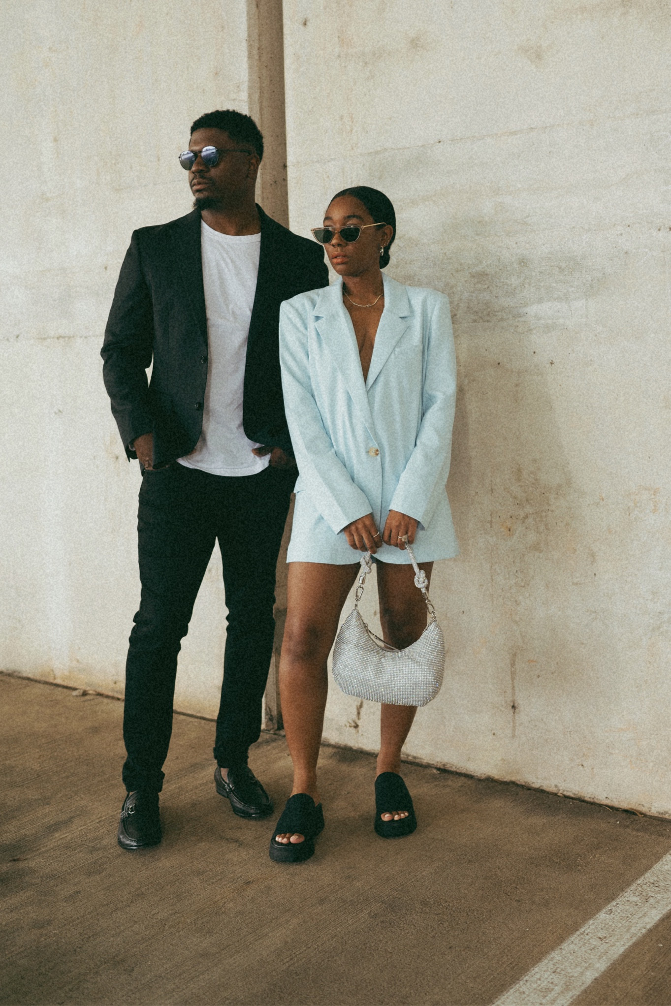 I love how the minimalist color palette of their outfits exudes a timeless elegance while the coordinated yet distinct styles create a beautifully balanced look. The clean lines and relaxed fits perfectly capture a modern, effortless aesthetic that is both chic and comfortable.