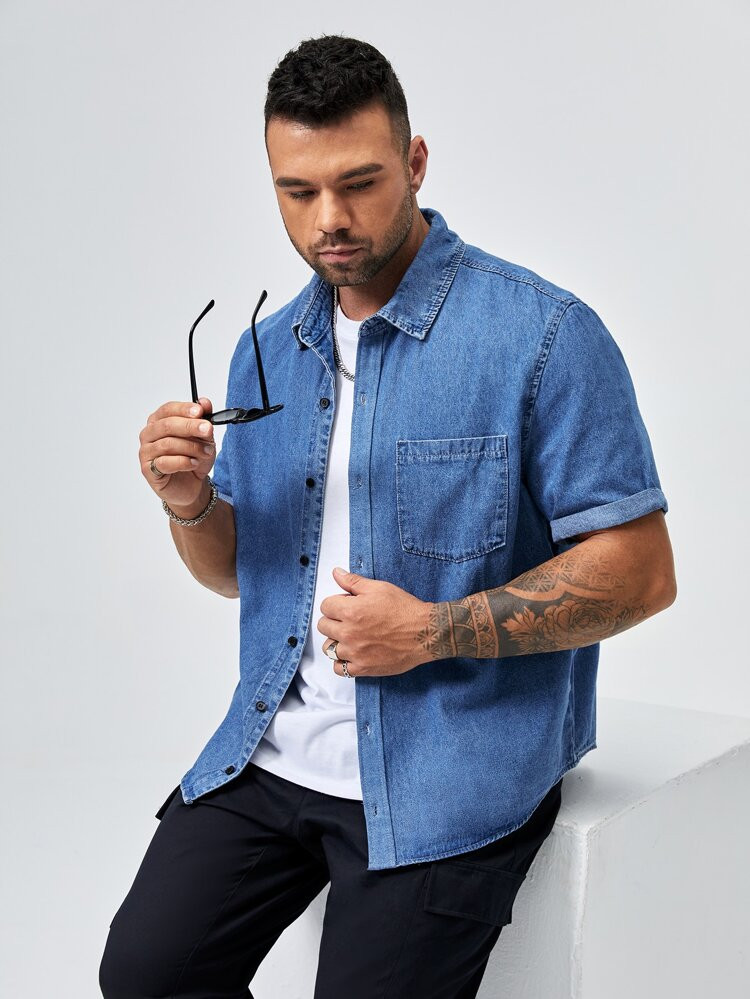 I love how this outfit effortlessly combines casual and chic elements, with the oversized blue shirt adding a relaxed vibe to the high-waisted jeans and white bralette. The clean lines and complementary color palette create a fresh, stylish look.