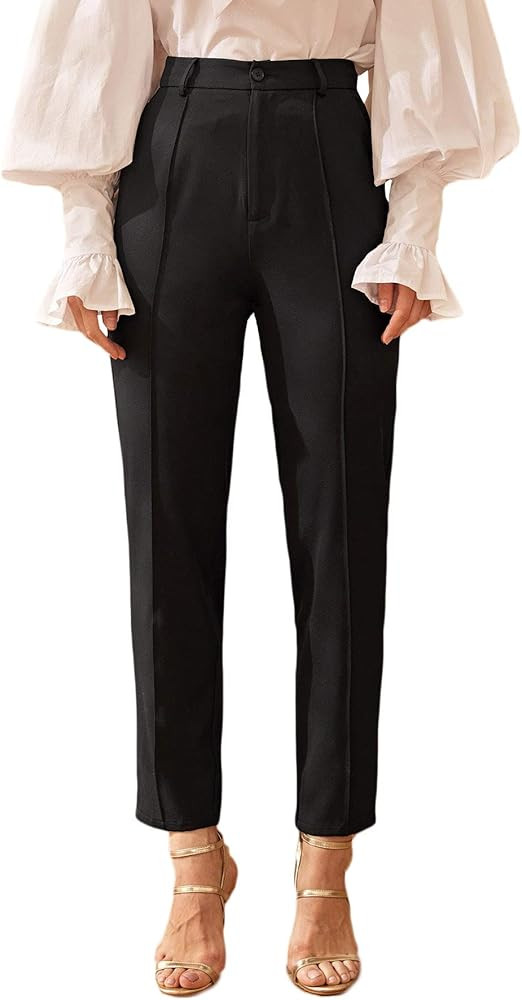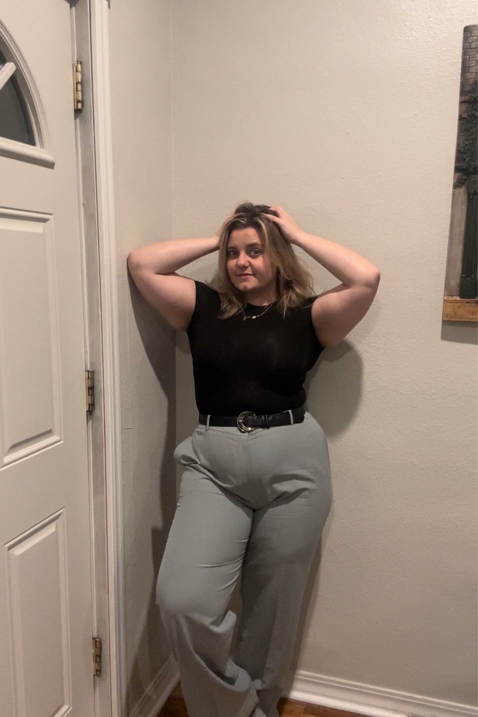 I love how the tailored high-waisted pants enhance my silhouette while the black top adds a touch of classic sophistication. The outfit is perfectly balanced and effortlessly chic, ideal for both casual and professional settings.