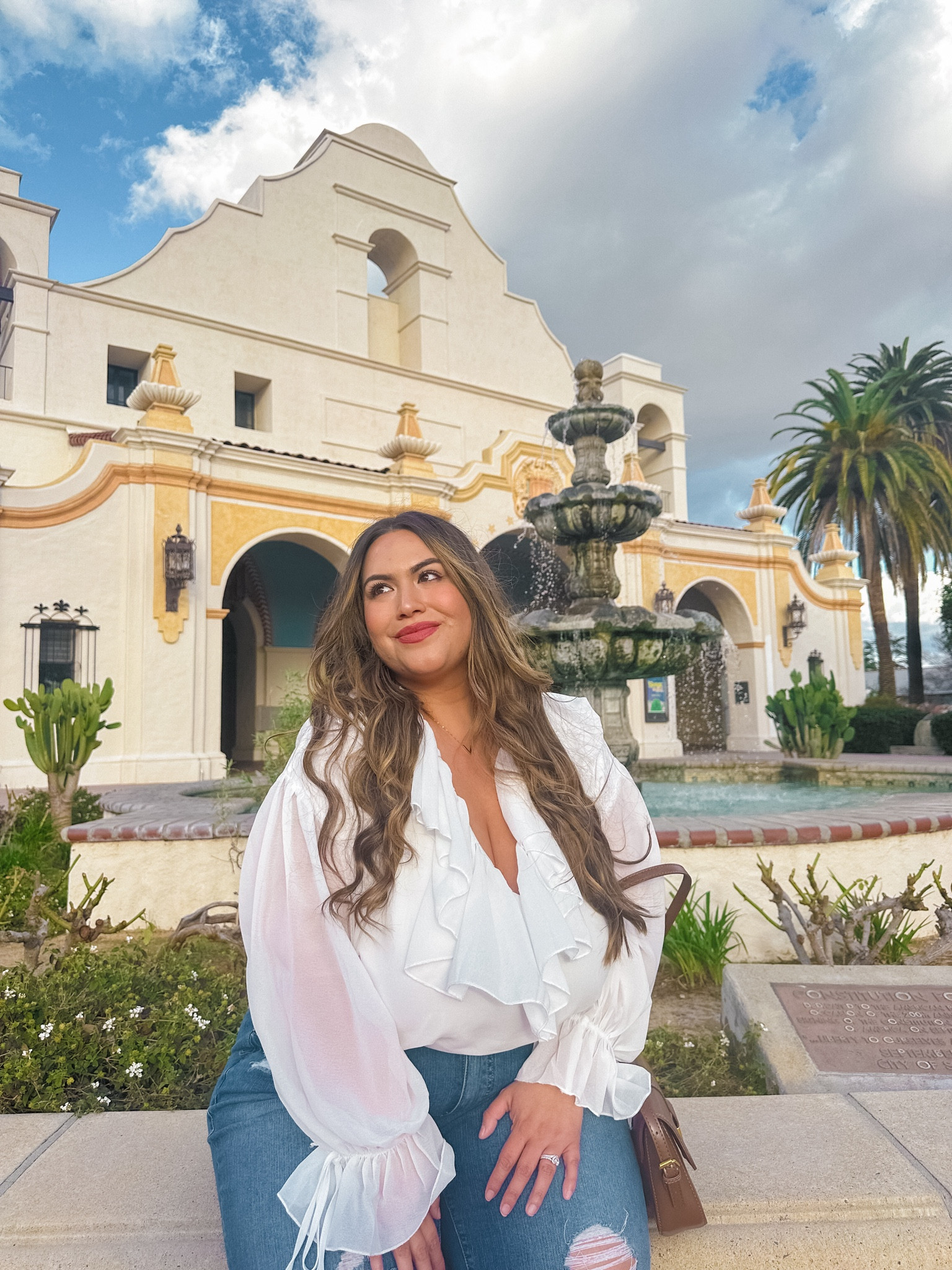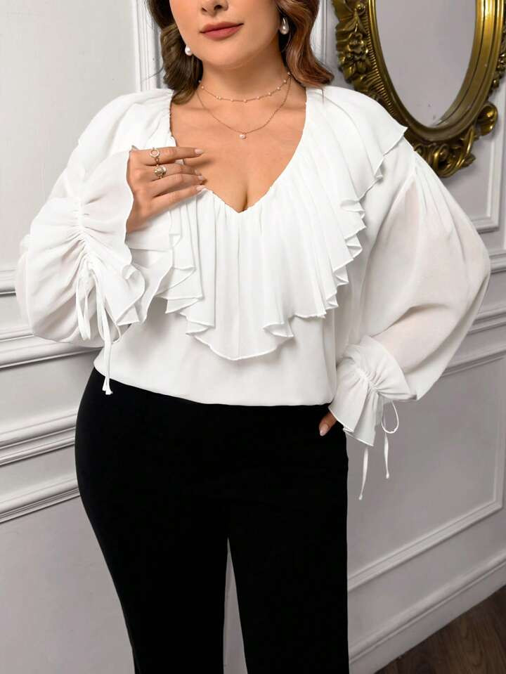 I love how the ruffled blouse adds a touch of elegance, while the ripped jeans introduce a casual, trendy vibe. The balance of sophistication and laid-back style makes this outfit perfect for a variety of occasions.