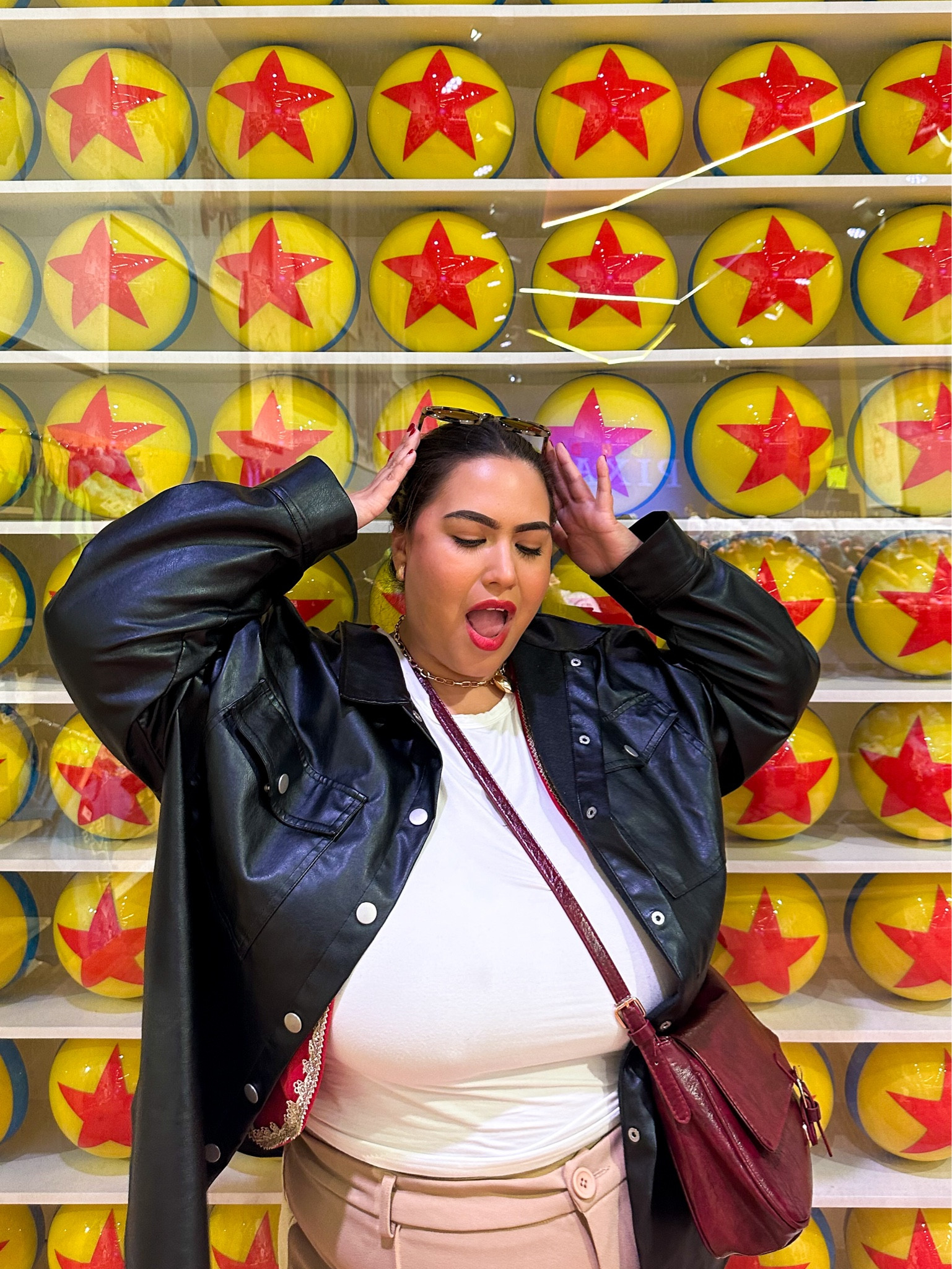 I love the bold contrast of the sleek black leather jacket over the crisp white top—it adds an edge to the outfit. The maroon crossbody bag brings a pop of color that ties the entire look together effortlessly.