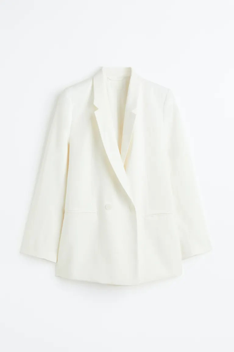 I love how the neutral tones of the white blazer and beige high-waisted trousers create a sophisticated and timeless look. The combination of tailored fit and chic accessories makes the outfit both empowering and stylish.