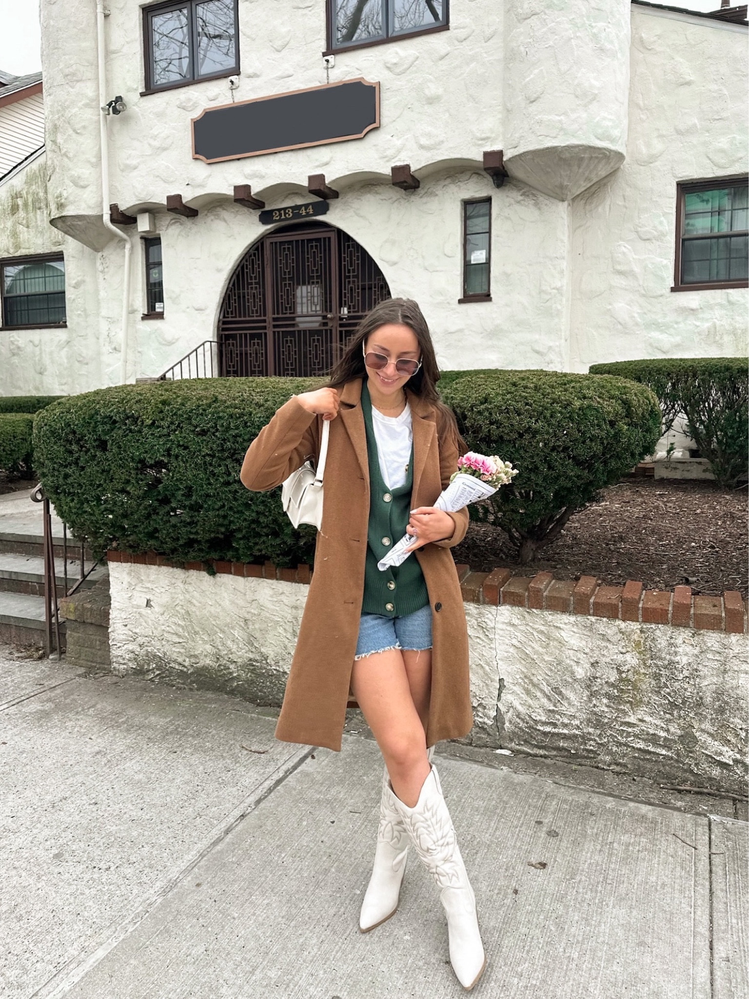 The juxtaposition of the tailored blazer with frayed denim shorts creates an appealing balance of sophistication and casual edge. Meanwhile, the statement cowboy boots add a bold, trendy flair that really makes the outfit stand out.