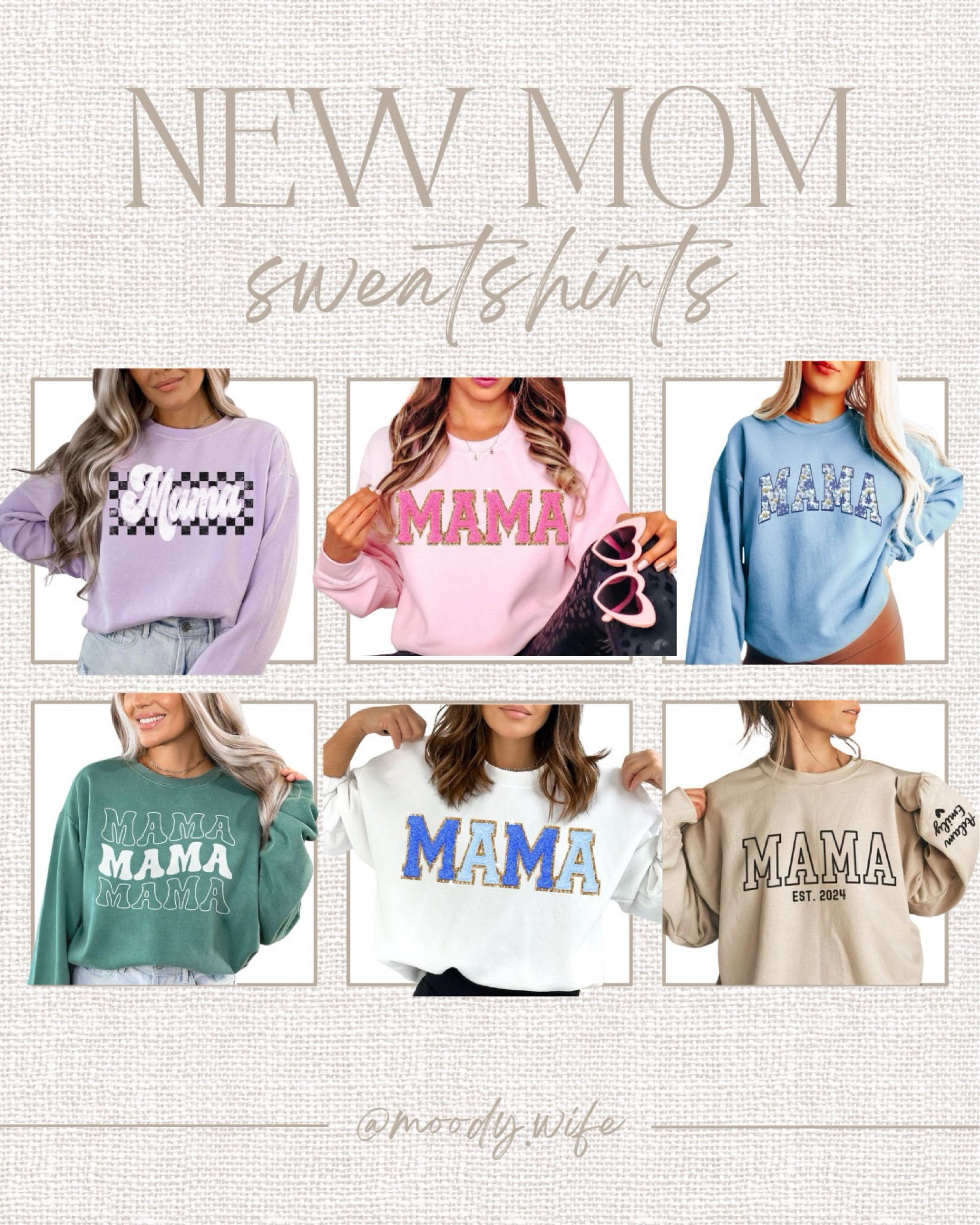 The color palette of these sweatshirts is soft and versatile, appealing to a modern aesthetic that allows for both comfort and style. The bold ‘MAMA’ typography adds a playful touch while celebrating motherhood, making these pieces both trendy and sentimental.