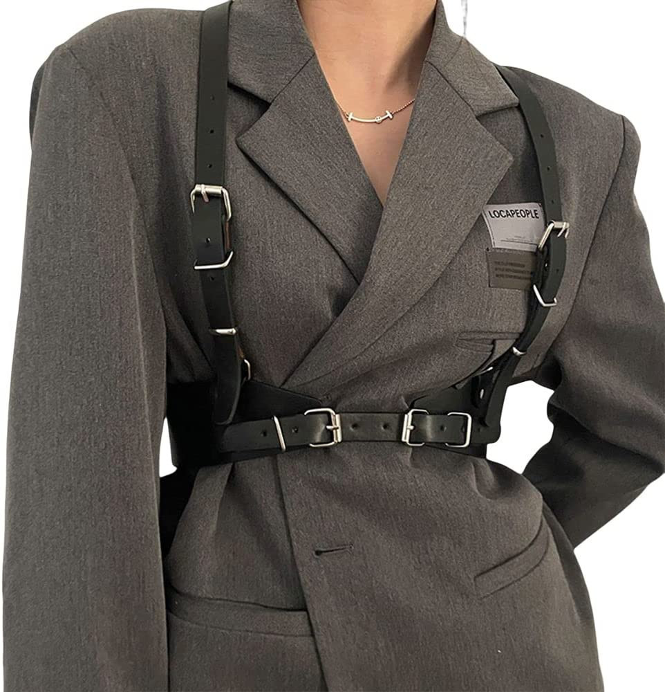 – I love the mix of casual shorts with the edgy harness; it’s a bold look.