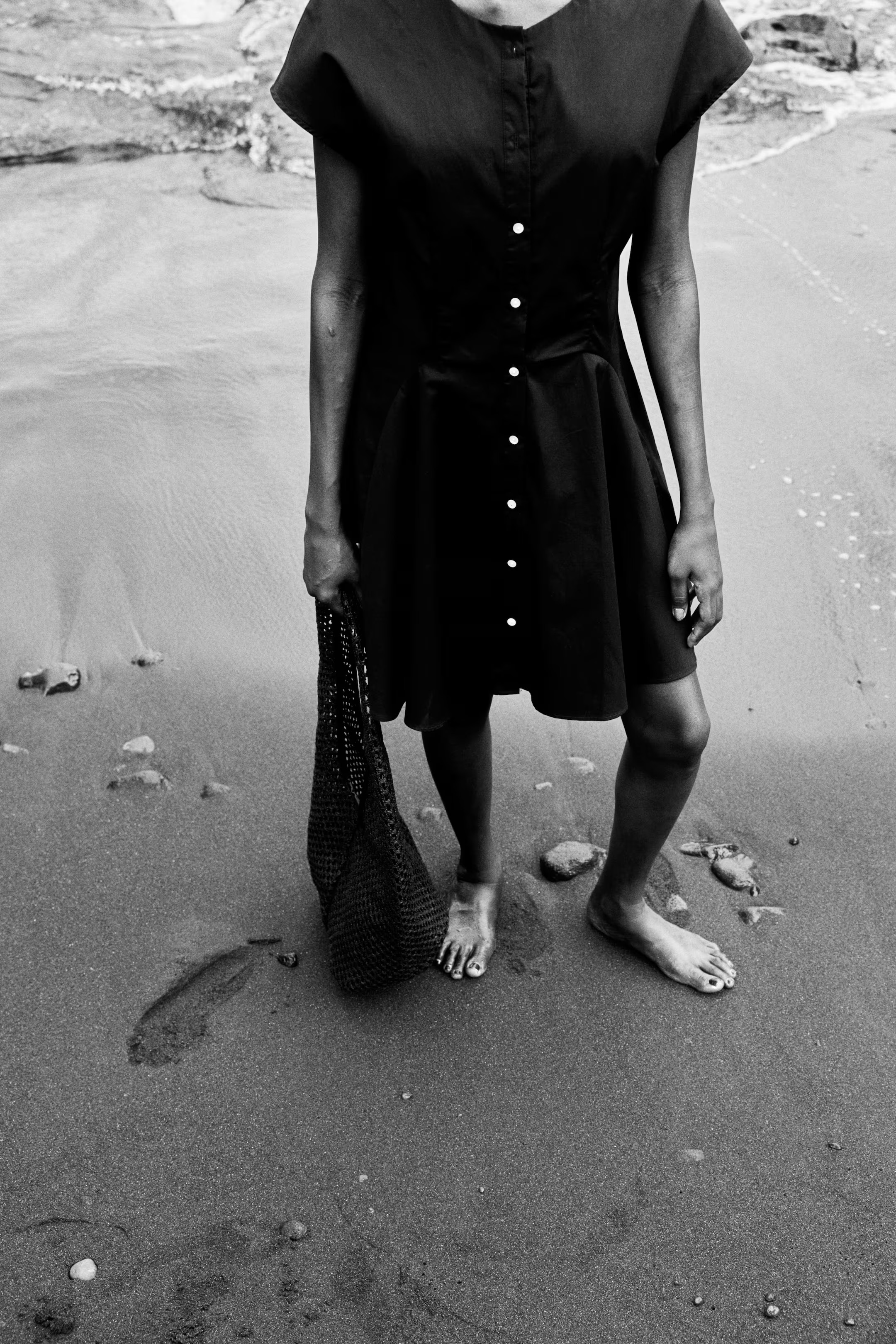 – The simple black bag ties everything together, making it effortlessly chic.