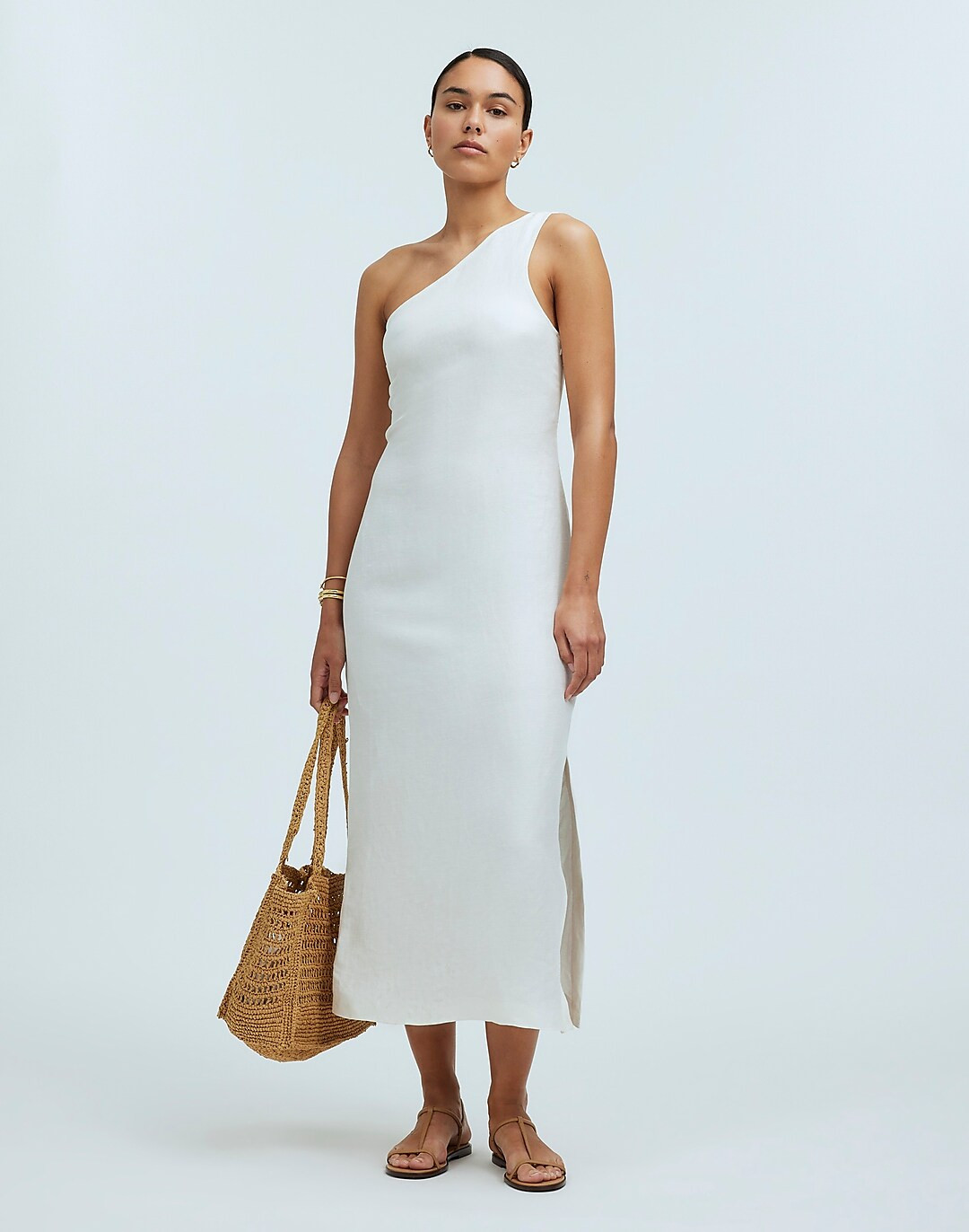I love how the white dress exudes effortless elegance while remaining casual and breathable for a sunny day. The chic accessories, like the bamboo handbag and stylish sunglasses, perfectly complement the fresh, summery vibe.