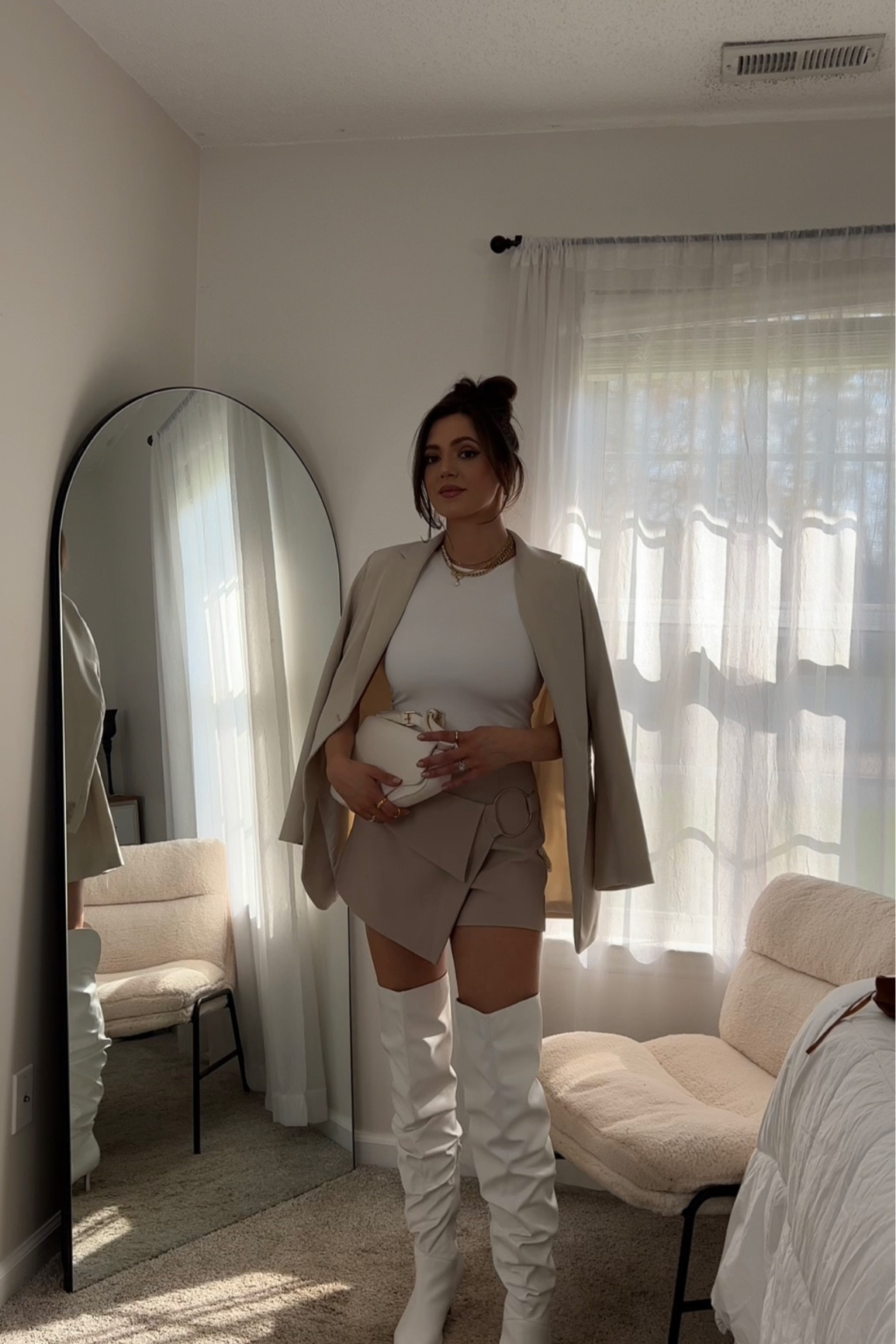 – I love how the neutral tones of the outfit create a classy and cohesive look.