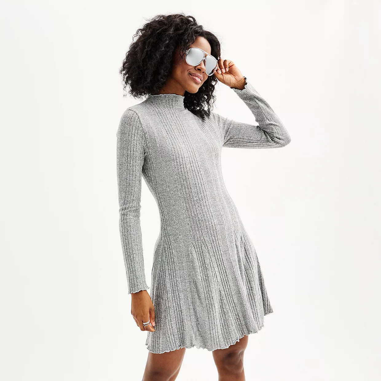 – I love how the leather jacket adds an edgy touch to the soft knit dress.