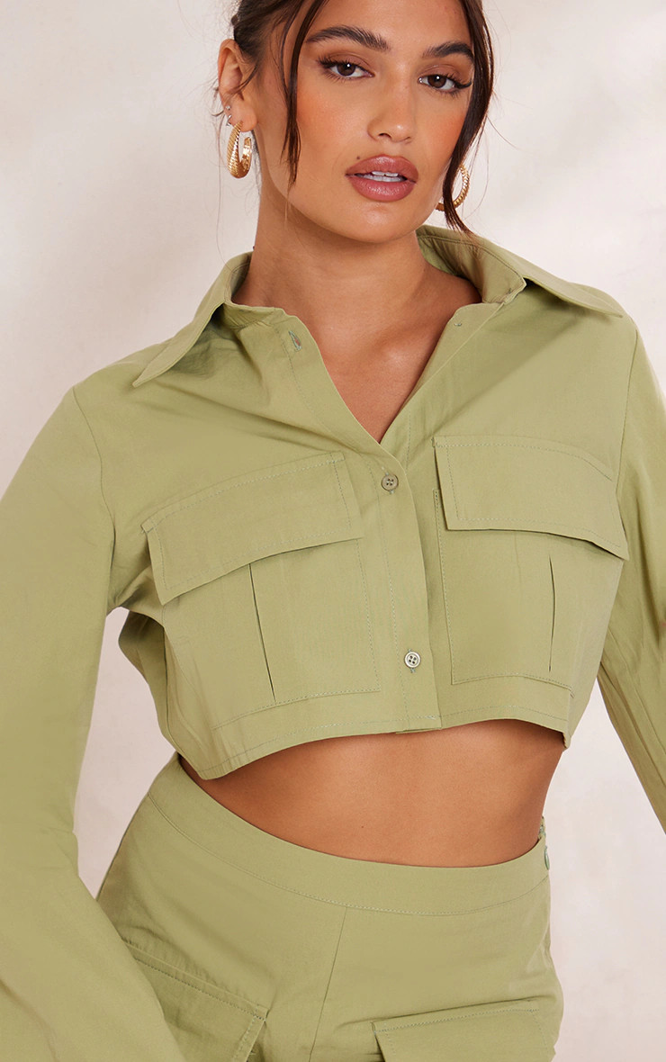 I love this outfit because the white crop top perfectly highlights a casual and laid-back vibe while the olive mini skirt with pockets adds a touch of utility chic. The clean, minimalist combination is effortlessly stylish for a summer day out.