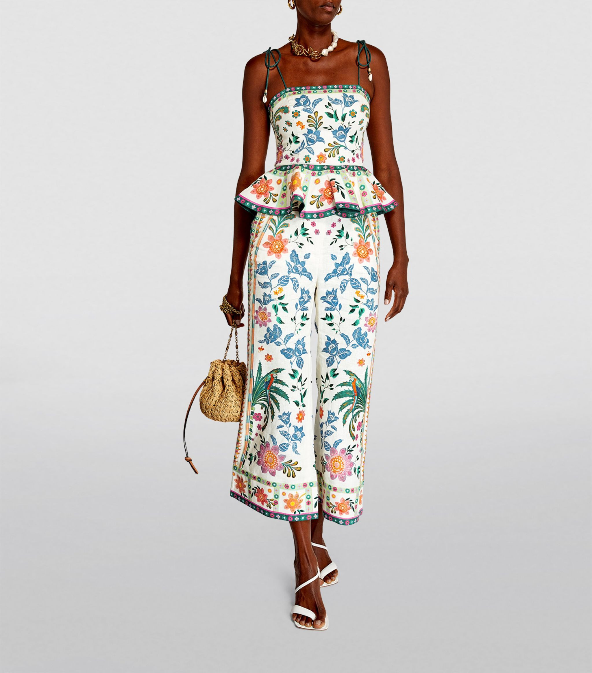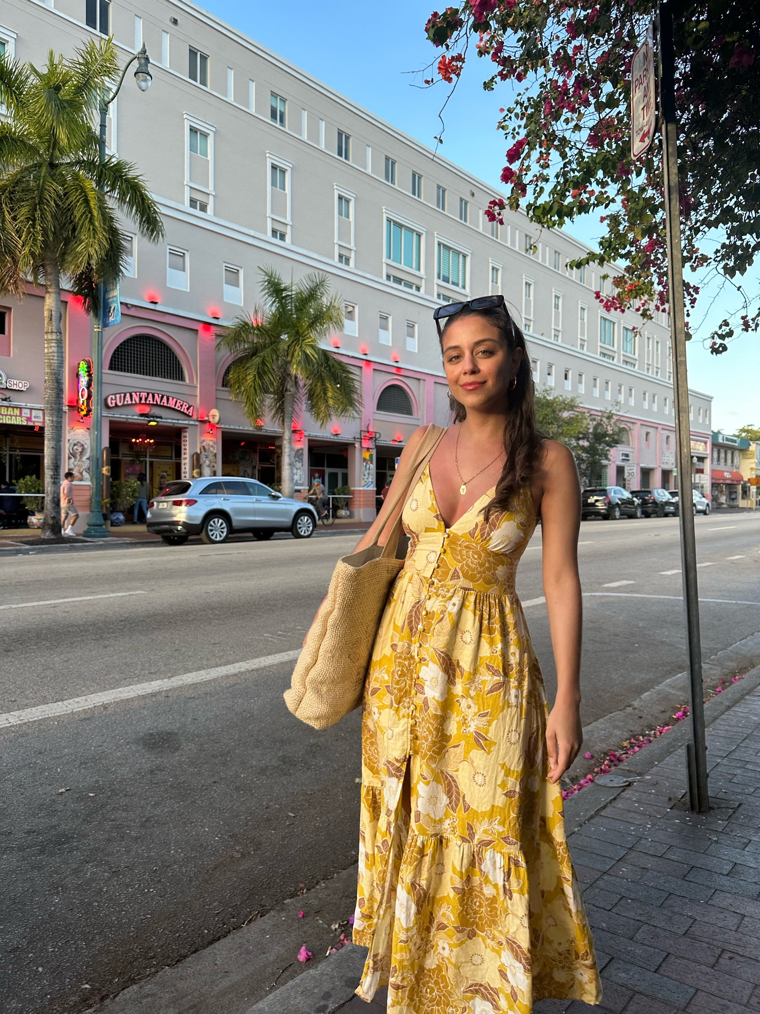 I love this outfit because the bright, floral maxi dress is perfect for a sunny day, and the natural tote bag adds a casual, chic touch. The simple accessories keep the look effortlessly stylish.