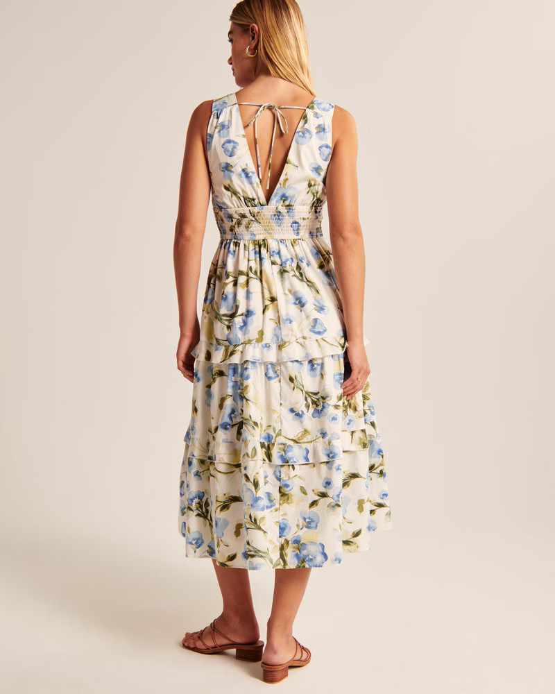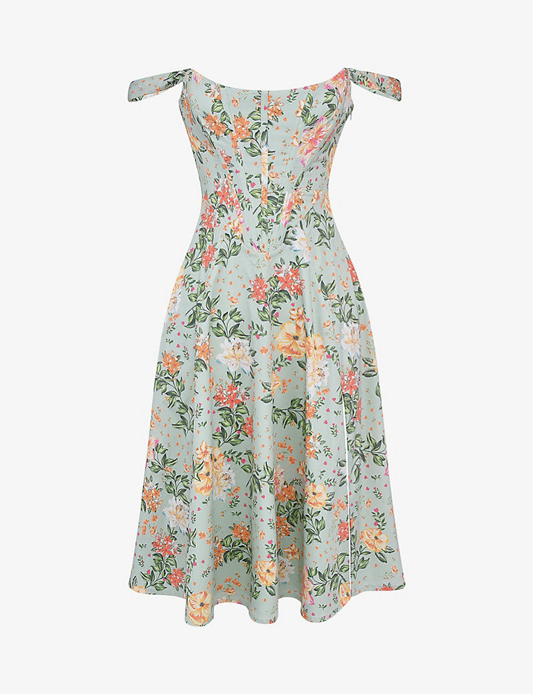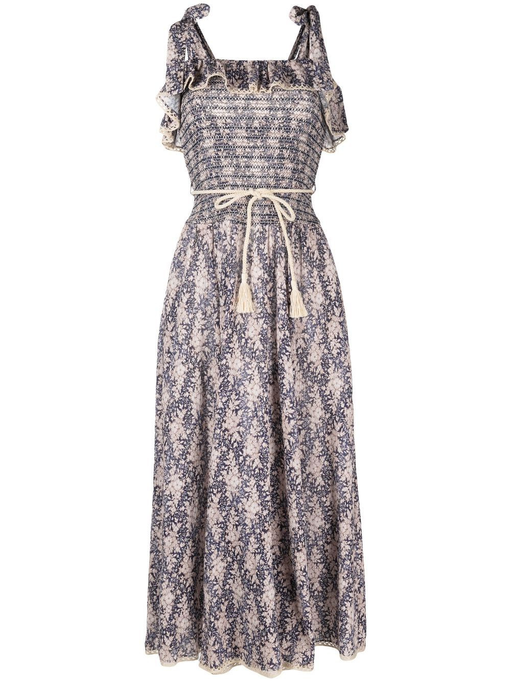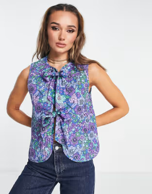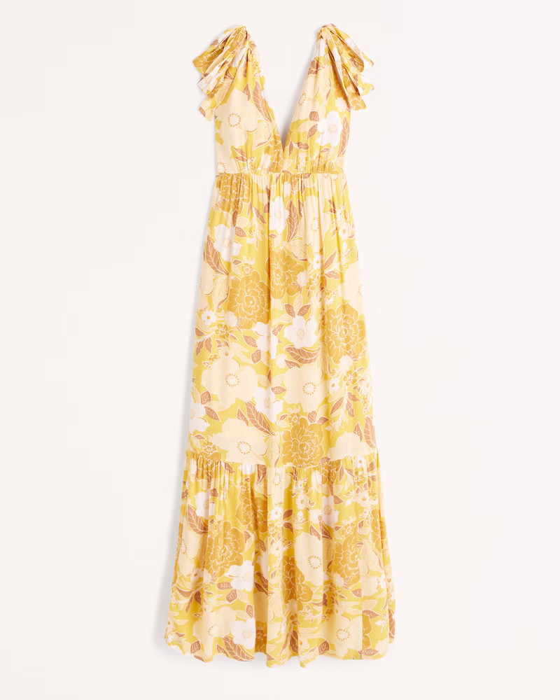 I love the way the floral pattern on this dress elegantly complements the natural beauty of the outdoor setting. The bow straps add a whimsical touch, making the outfit both romantic and stylish.