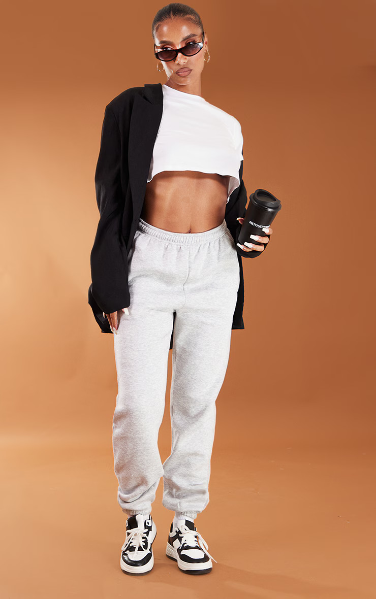 I love how this outfit strikes the perfect balance between casual and playful, with the cozy gray sweatshirt complementing the fun, flirty white skirt. The pink sneakers and cute hair accessory add a touch of youthful charm that ties the look together effortlessly.
