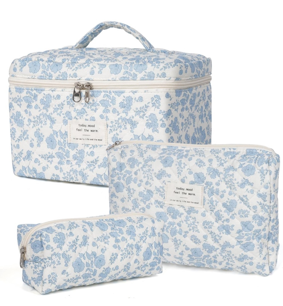 The floral pattern on this set exudes a timeless elegance, and the cohesive design across different sizes offers versatility while maintaining a chic, coordinated look. The light color palette brings a fresh and clean aesthetic that’s perfect for spring or summer accessorizing.