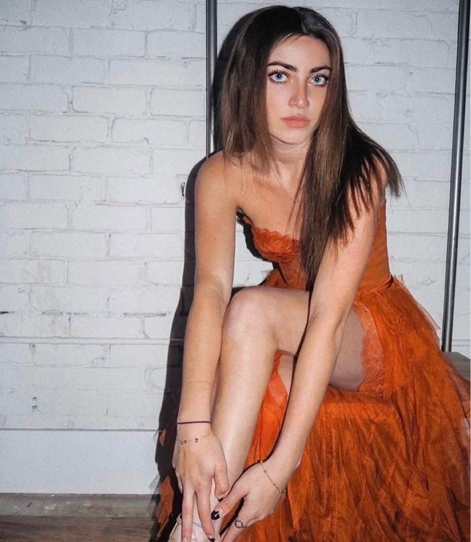 The vibrant orange hue of the dress makes a bold statement, standing out with its rich, warm tones that demand attention. Its textural layers add a playful dimensionality, creating a visual interest that is both fashion-forward and whimsically elegant.