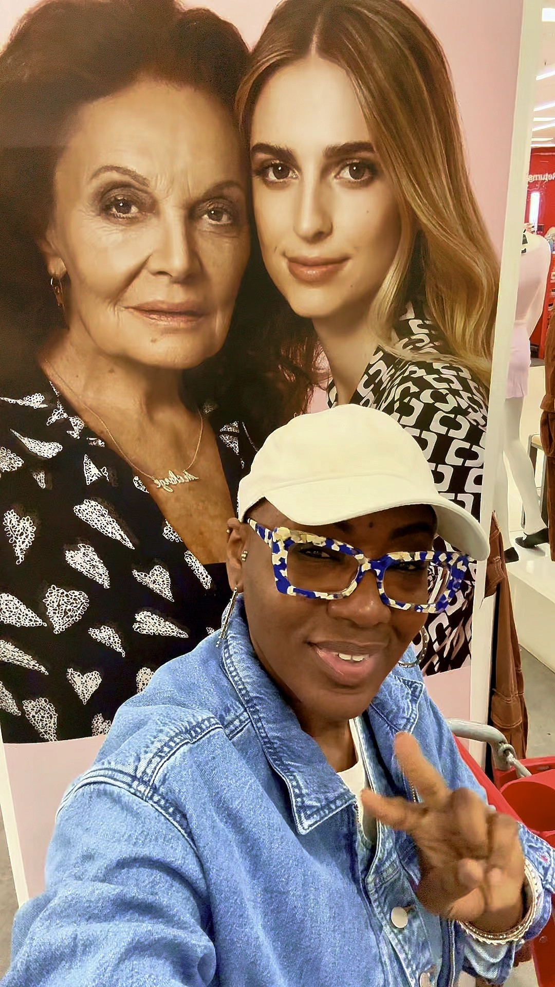 The ensemble perfectly captures the timeless appeal of denim with a modern twist—the jean jacket’s classic cut is effortlessly stylish and versatile. The paired accessories, including the unique sunglasses and the on-trend cap, add a personal flair that’s both individualistic and fashion-forward.