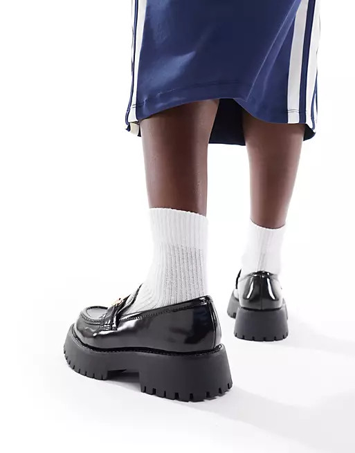 I love how the sleek black top contrasts beautifully with the playful green polka dot skirt, creating a chic and balanced outfit. The chunky loafers add a trendy edge, making the look both stylish and comfortable.