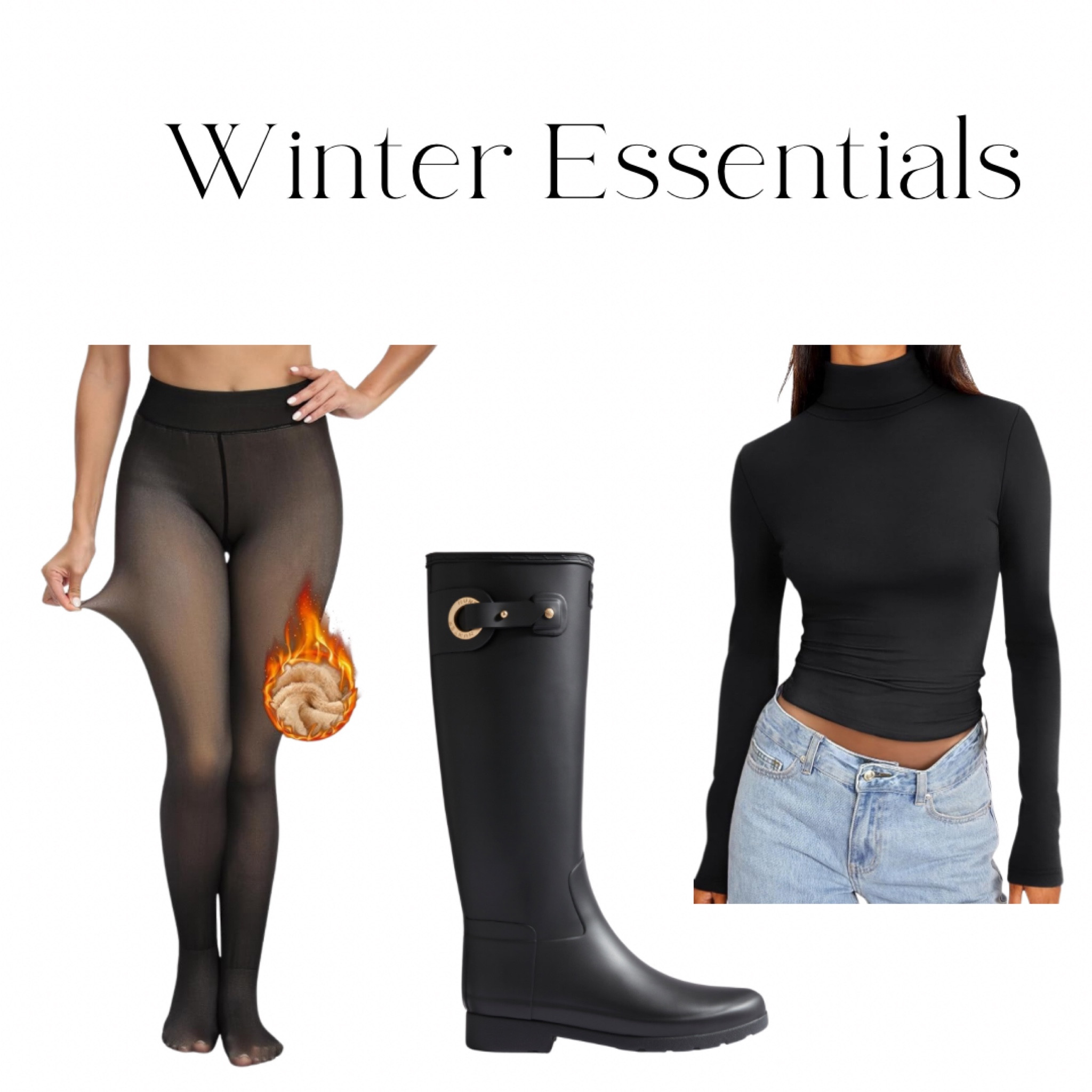 The sleek black turtleneck offers a timeless look that can be layered or stand alone whilst the classic tall boots provide both practicality and a chic, equestrian touch. The outfit pieces shown are versatile essentials perfect for fashion-forward winter layering.