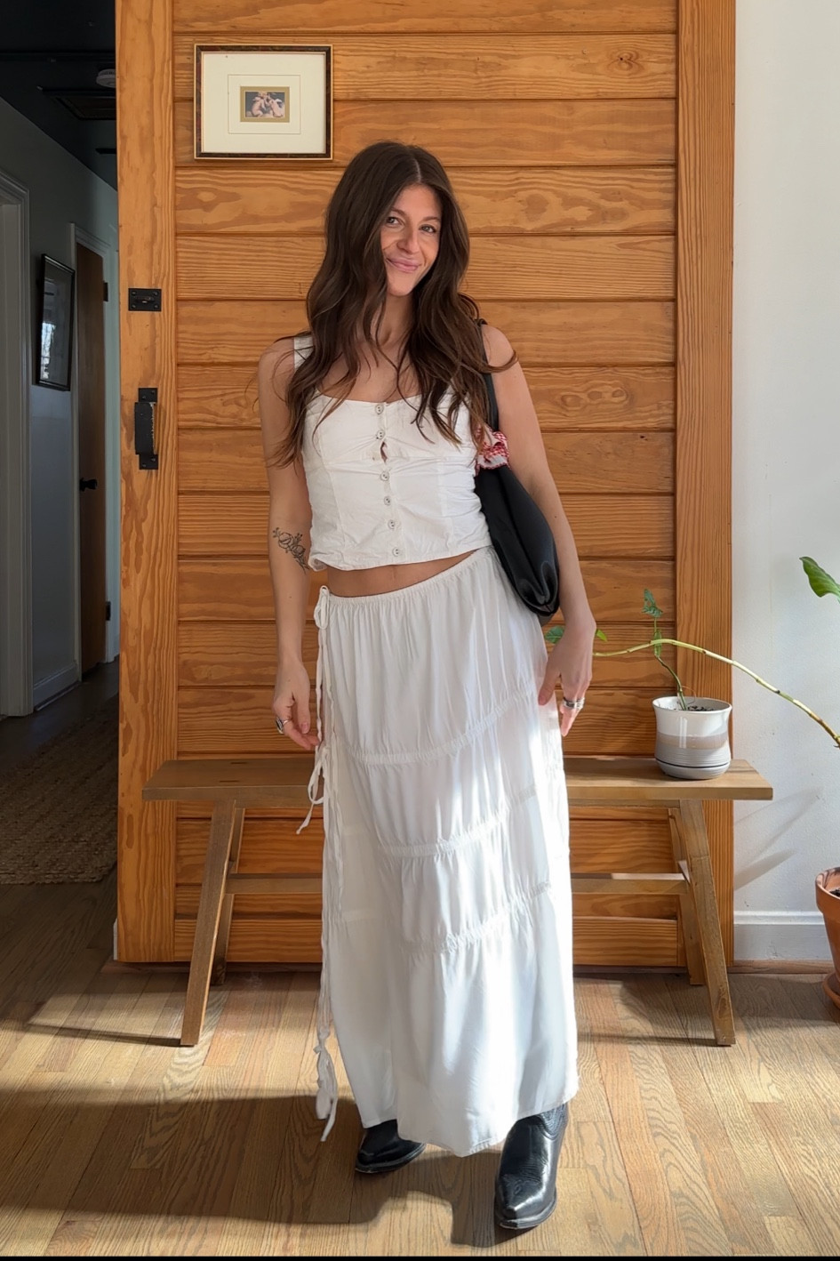 – I love the effortless and relaxed vibe of this all-white ensemble.