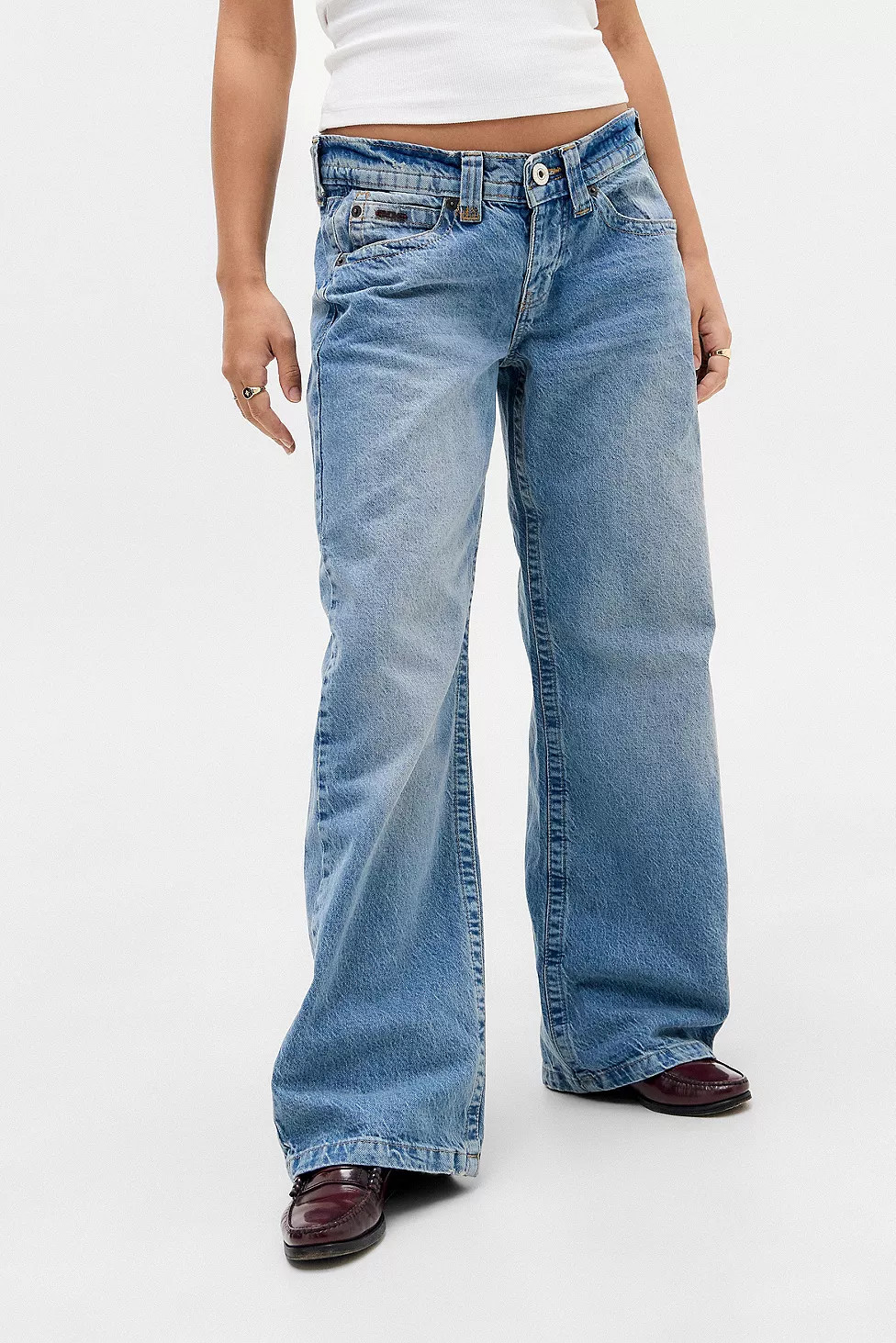 – The wide-leg jeans and classic brown loafers give off an effortlessly cool look perfect for a casual day out.