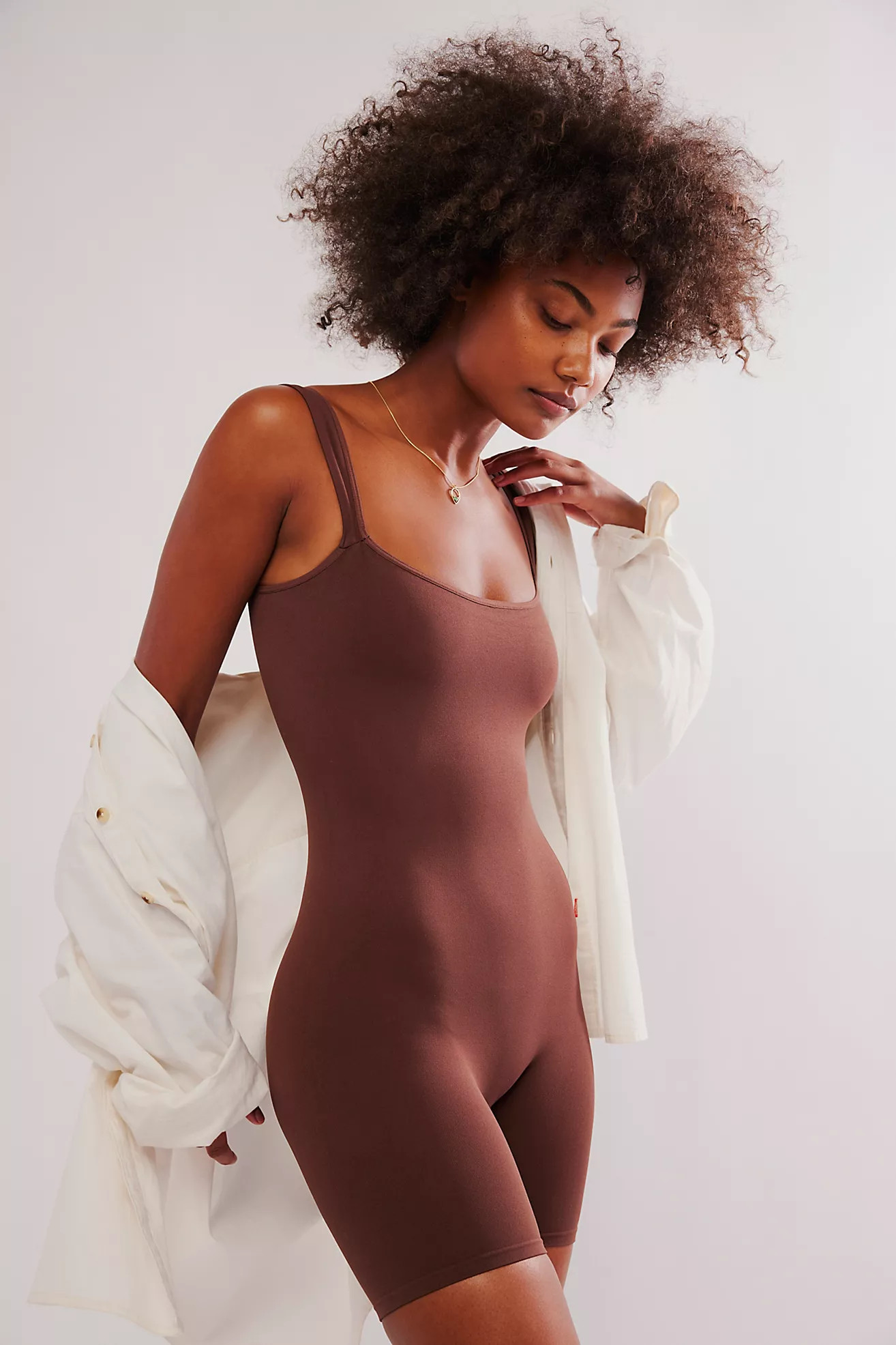 – The fitted romper underneath looks comfy and perfect for a day out.