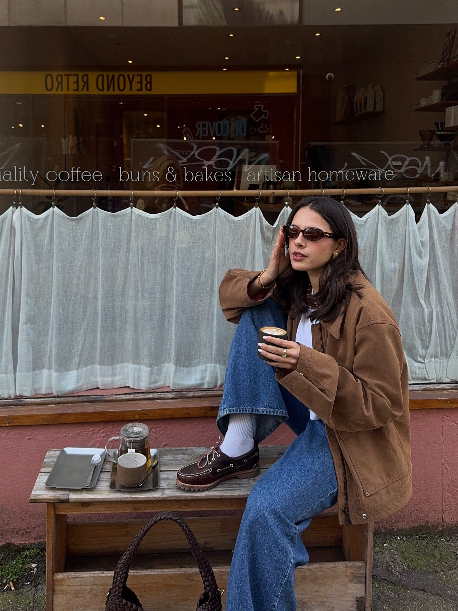 – I love the relaxed vibe of this outfit, with the brown jacket adding a warm, cozy touch.