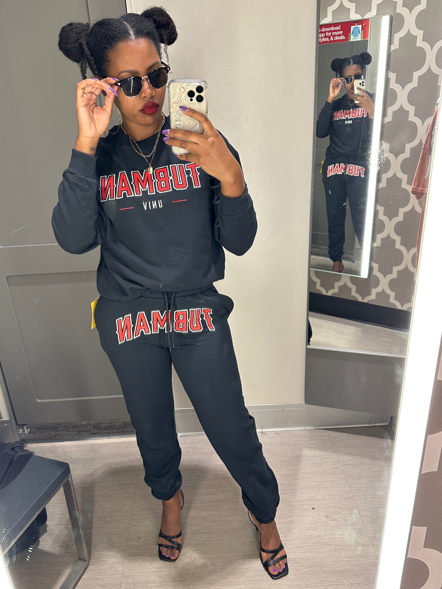 I love how this outfit effortlessly combines comfort and style with its sleek, coordinated look. The bold graphic design adds a trendy, sporty edge that’s perfect for a casual outing.