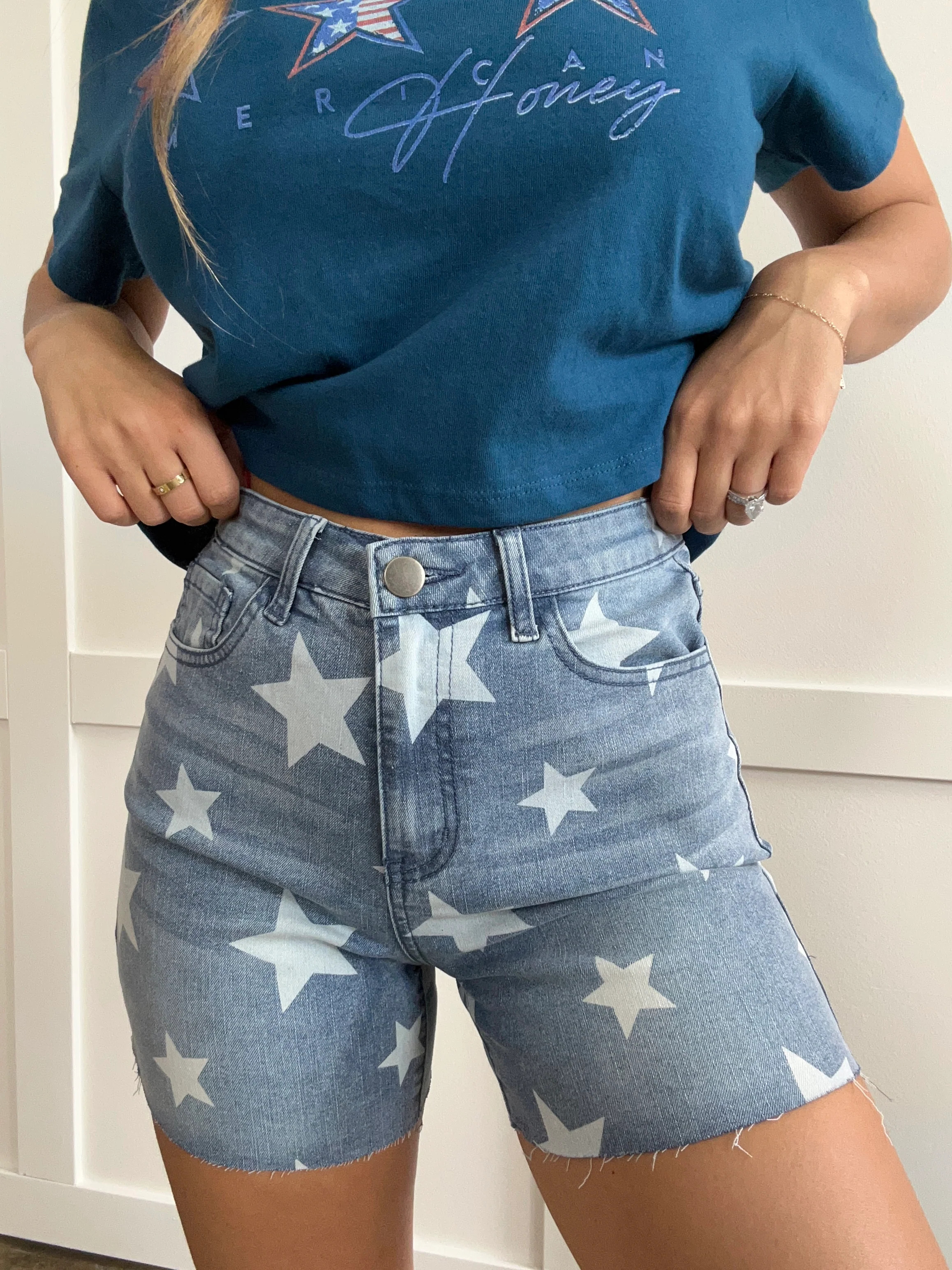 I love this outfit’s effortless blend of casual and chic; the graphic tee paired with denim shorts is perfect for a laid-back day. The bright red sneakers add a fun pop of color and keep the look vibrant and youthful.
