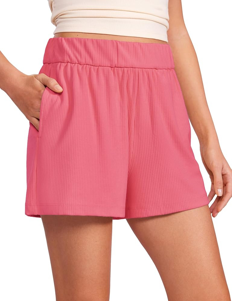 I love the vibrant pink top paired with the sporty black shorts; it’s a perfect mix of casual and athletic vibes. The knotted shirt adds a trendy and playful touch, making the whole look effortlessly chic.