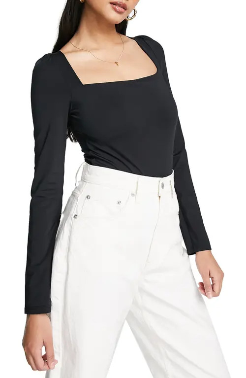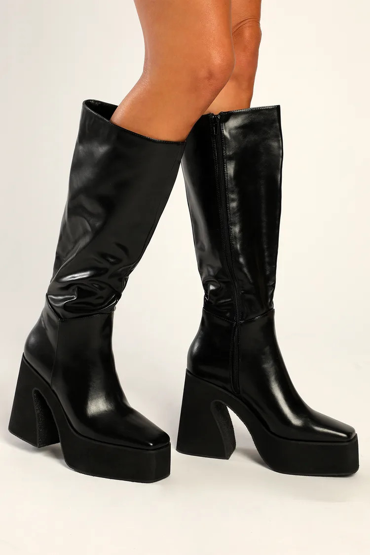 I love this outfit because the monochromatic black ensemble paired with the bold white boots creates a striking contrast. The sleek design is both chic and comfortable, perfect for an effortlessly stylish look.