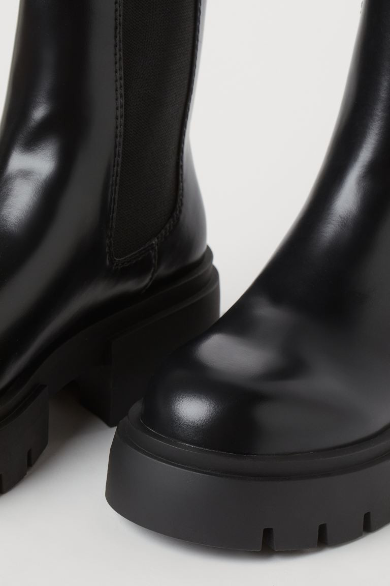 I love this outfit because the combination of the cozy oversized sweater with the sleek leather leggings creates a perfect balance of comfort and style. The chunky black boots add an edgy finish, making this an effortlessly chic look for any casual outing.