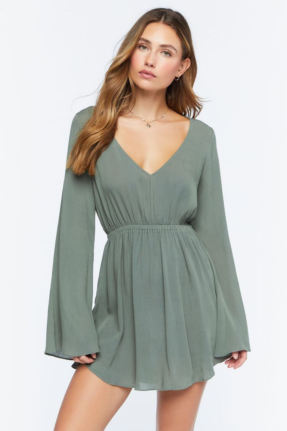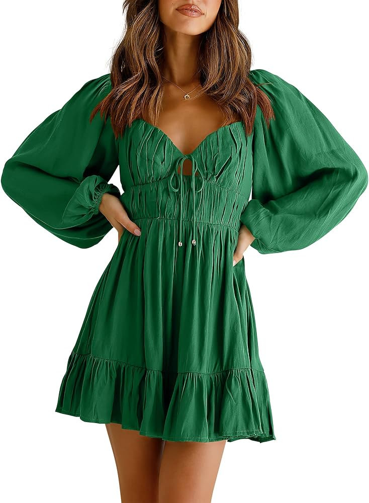 I love this outfit because the deep green ribbed knit dress beautifully hugs the body while providing warmth and comfort. The simple, elegant design and long sleeves make it perfect for both casual and dressed-up occasions.