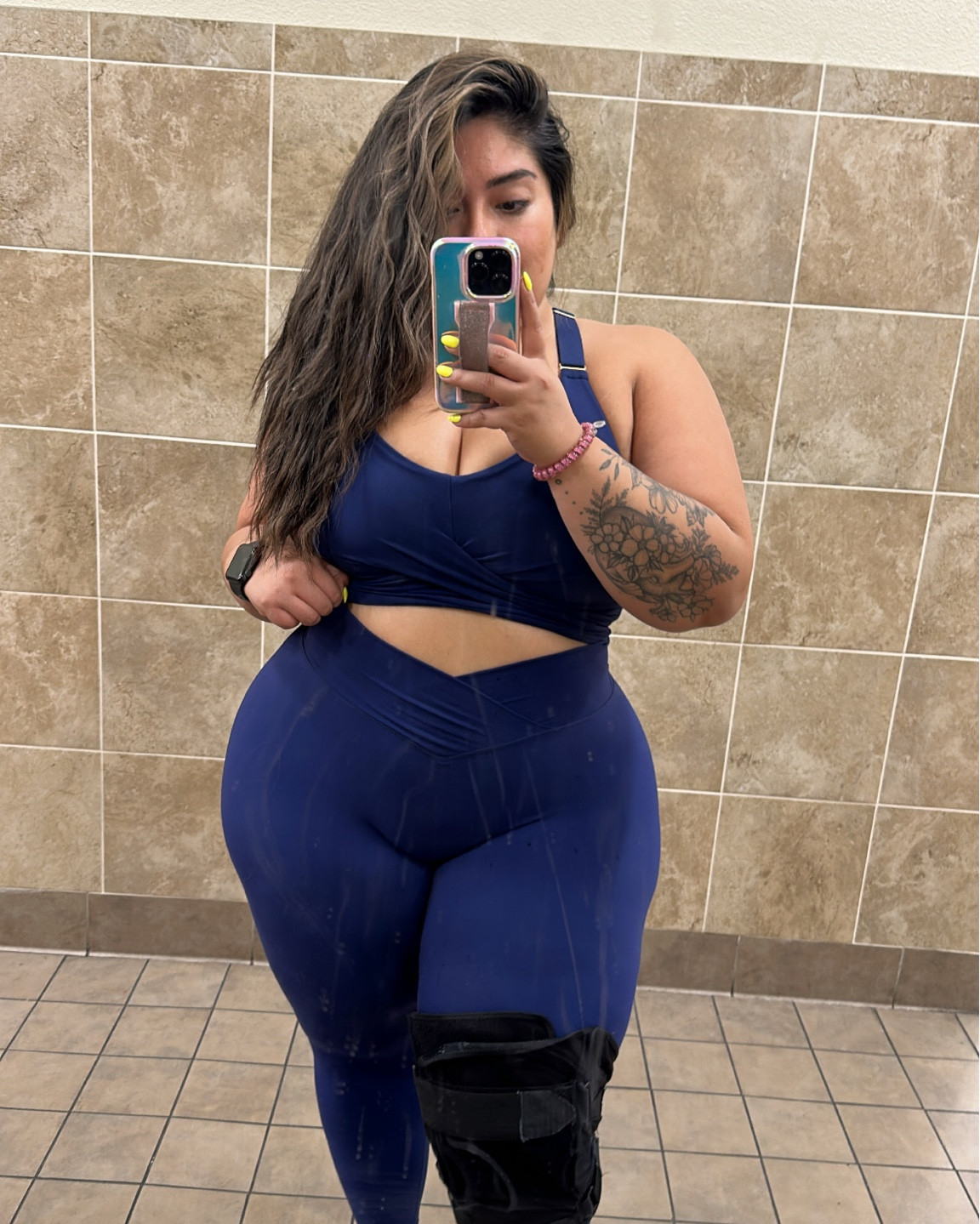 I love how this outfit offers great support and comfort with its sleek, form-fitting design; the color is both trendy and flattering. The ensemble is perfect for both workout sessions and casual wear, making it versatile and stylish.
