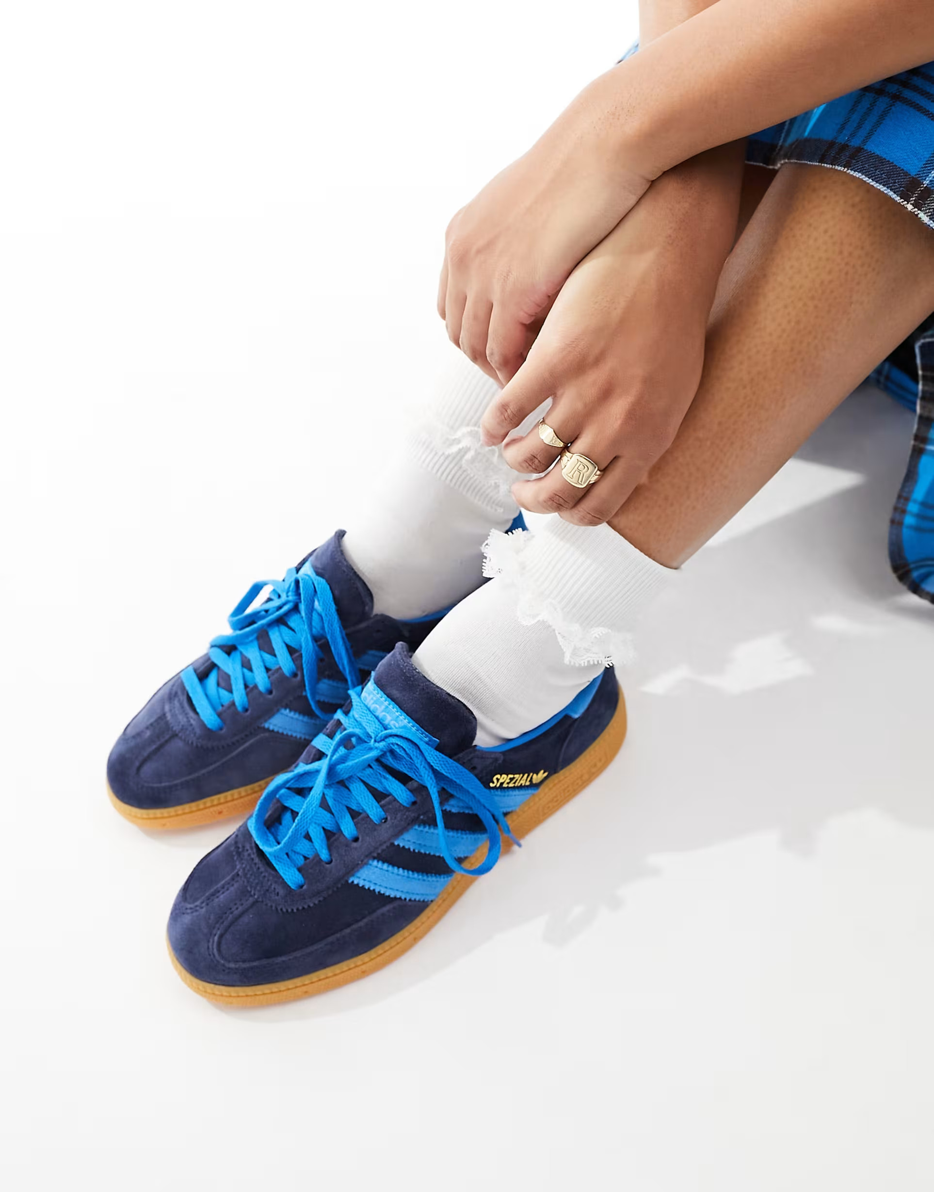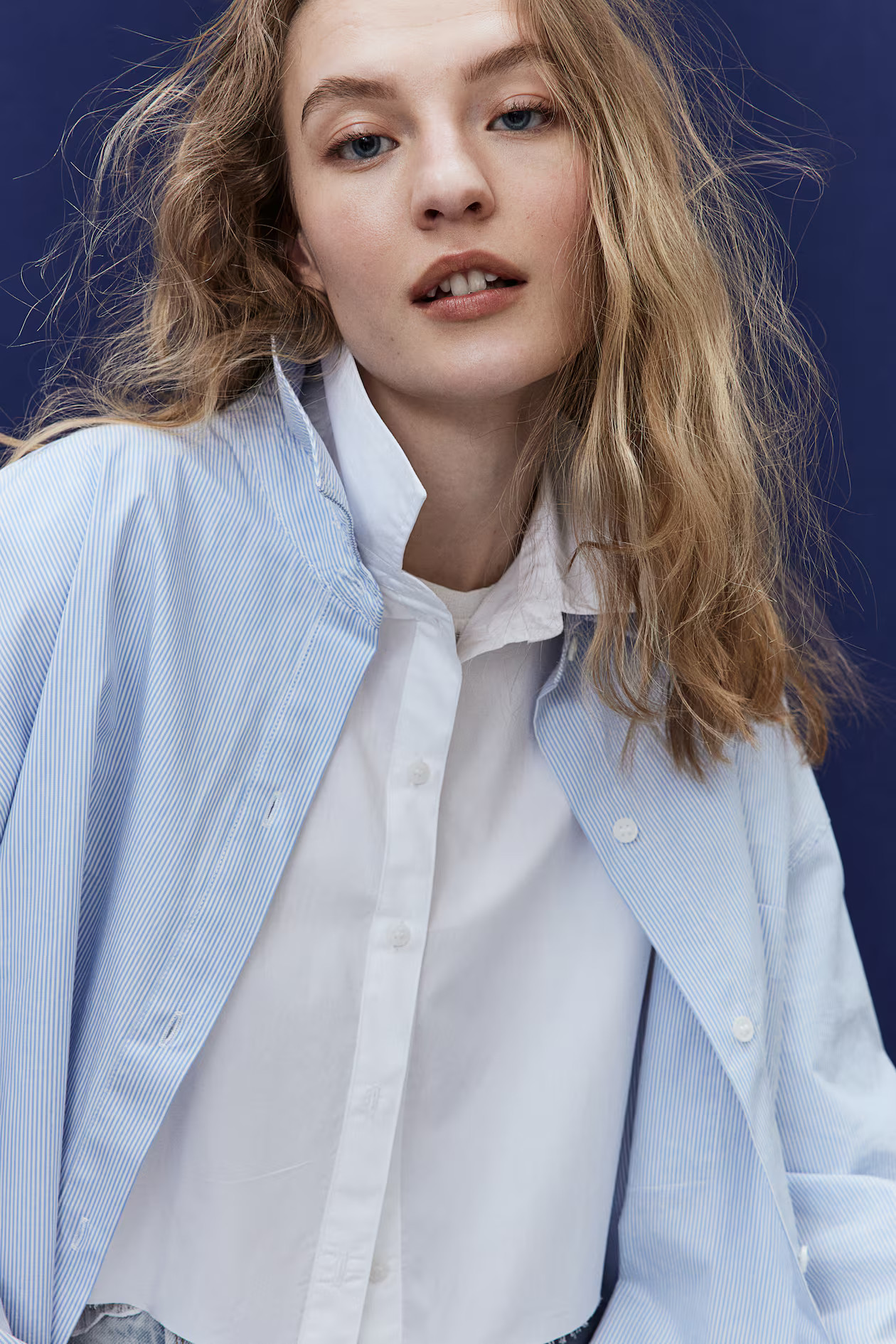 I love how the oversized jacket adds an effortlessly cool vibe to the classic blue shirt, balancing between casual and chic. The bold patterned pants and unique sneakers create an exciting contrast, making the outfit stand out.