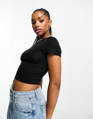 I love how this outfit blends a classic black top with light wash jeans for a chic, timeless look. The black pointed shoes and matching accessories add a touch of sophistication, perfectly balancing casual and elegant vibes.