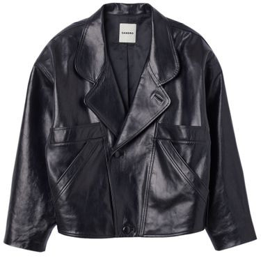 I love how the edgy leather jacket and tall black boots give a modern twist to the classic pleated skirt and button-up shirt. The blend of texture and monochrome tones is effortlessly chic and perfectly balanced.