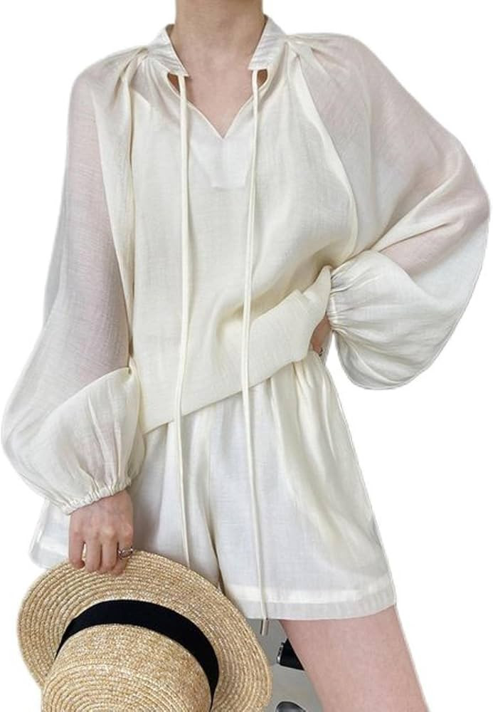 I love how this outfit combines a breezy, semi-sheer blouse with chic sunglasses, creating a sophisticated yet effortless look. The addition of the designer clutch adds a touch of luxury, making the ensemble perfect for both day and evening wear.
