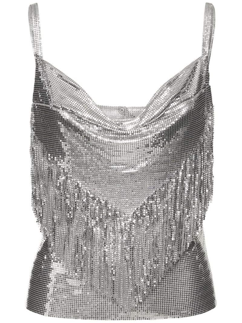 I love how the fringed, silver top adds a touch of glamour and movement, while the high-waisted, wide-leg jeans balance the look with a relaxed, vintage vibe. The denim handbag perfectly complements the jeans, creating a cohesive and stylish ensemble.