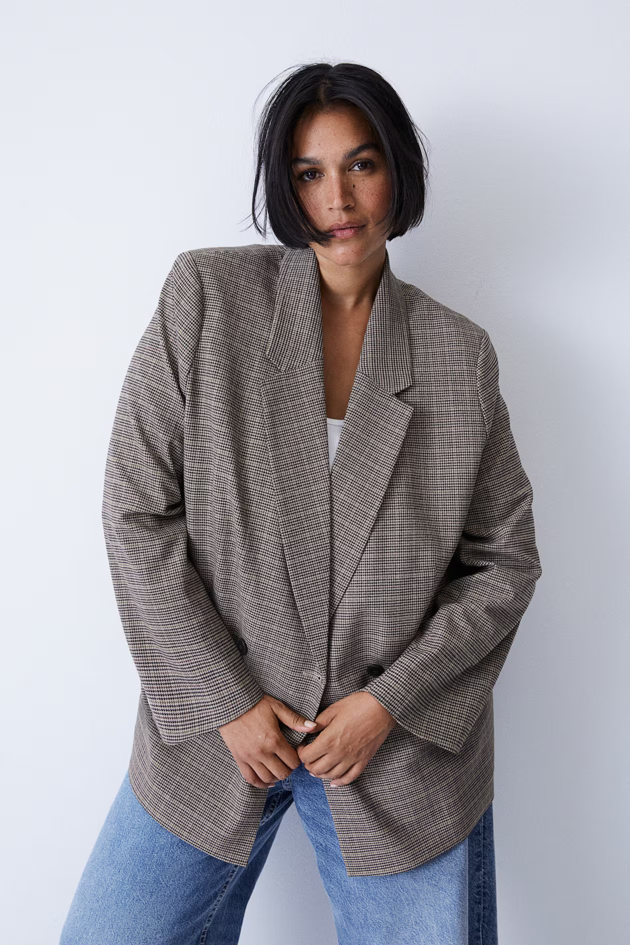 I love how the oversized blazer adds a touch of sophistication while complementing the chic, mini skirt for a balanced, modern look. The addition of strappy sandals and trendy glasses perfectly ties the outfit together, making it both stylish and effortlessly cool.