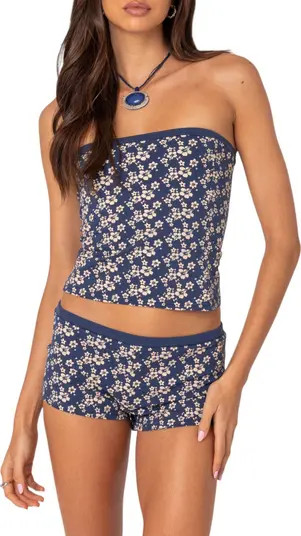 I love how this outfit seamlessly blends a breezy, floral strapless dress with a summery straw hat for an effortlessly chic look. The neutral tote and sandals complete the ensemble perfectly, making it ideal for a casual daytime outing.